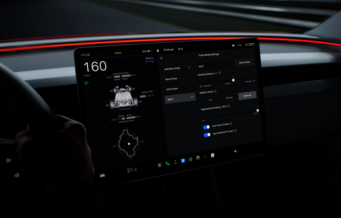 Tesla의 최신 UI/UX 시스템을 통해 직관적인 화면 구성과 다양한 차량 제어 기능을 제공합니다.